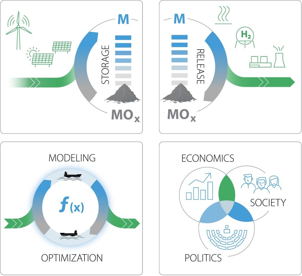 Eisen verfügt über einzigartige Eigenschaften als Energiespeicher: Es kann große Energiemengen speichern, sicher transportiert werden und bei der „Verbrennung“ (Oxidation) Strom, Wärme oder bei Bedarf Wasserstoff – ohne CO₂-Emissionen – produzieren. Der entstehende „Rost“ (Eisenoxid) lässt sich mit erneuerbaren Energien wieder zu Eisen reduzieren – ein endlos wiederholbarer Kreislauf.
